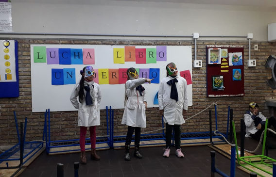 "Lucha libro - un derecho libre", taller de derechos humanos y artes escénicas. Mediante un juego de improvisación los luchadores con sus habilidades representadas en valores resolvían situaciones problemáticas que se generan arriba del ring.
